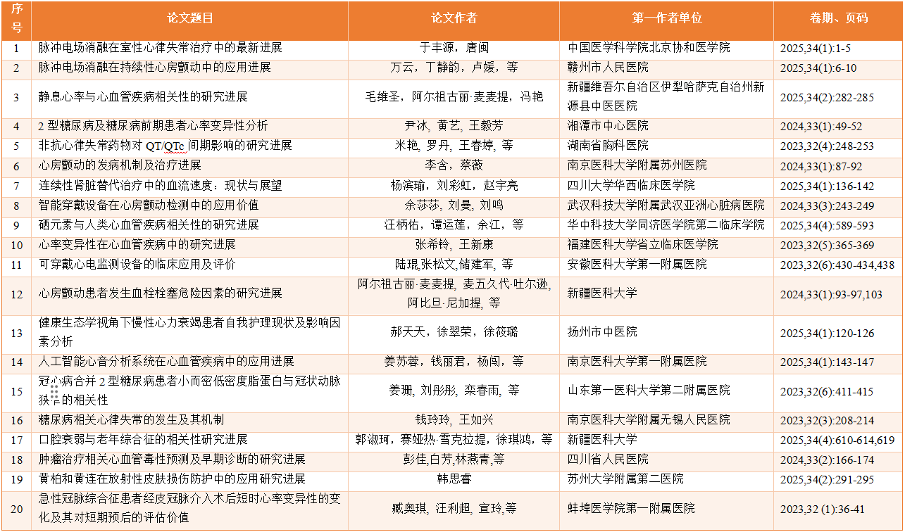 为表彰优秀论文与作者,鼓励学术创新,持续提升本刊学术质量与影响力,《实用心电与临床诊疗》编辑部组织开展2023—2025年度优秀论文评选活动。